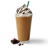 A creamy blend of decadent chocolate, espresso and ice, topped with whipped cream and a chocolate drizzle.