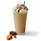 Creamy caramel and espresso, blended with ice, and topped with whipped cream and a caramel drizzle.
