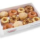 A dozen that doubles down on culinary innovation and delivers a whole new kind of crave. This limited-edition box brings together the full trio of Milk Bar® mashups: (3) Milk Bar® Birthday Cake Doughnuts – Original Glazed® cake doughnut topped with birthday frosting, cake crumbs, and rainbow sprinkles. (3) Milk Bar® Pie Doughnuts – Filled with gooey, buttery pie filling, dipped in caramel icing and oat-cookie topping, & dusted with sweet, powdered coating. (3) Milk Bar® Compost Cookie® Doughnuts – Original Glazed® doughnut dipped in cookie icing and sprinkled with Compost Cookie® sweet, salty, chocolatey crunch and caramel drizzle. (3) Original Glazed® Doughnuts for the perfect nostalgic balance. It’s a playful, boundary-pushing mix of textures and flavors that turns every bite into a celebration. We'll substitute a delicious, closest match option in the event a doughnut variety becomes unavailable.