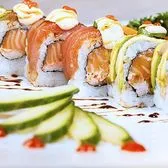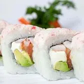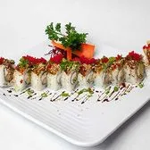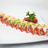 Salmon, cream cheese, crab, topped with shrimp, avocado, masago and spicy mayo.