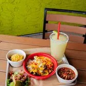 Your choice of protein layered with chili con queso, cheddar and jack cheese, sauteed mushrooms and onions and peppers; served with fresh guacamole and pico de gallo, flour tortillas.