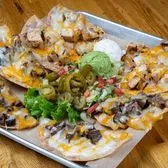 Steak, chicken, or combo layered with refried beans, cheddar and jack cheese, served with jalapenos, sour cream and guacamole.