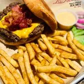 1/2 LB fresh ground steak with crispy bacon, American cheese, lettuce, tomatoes, pickles, onions and chipotle mayo on the side. Served with seasoned fries.