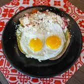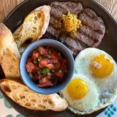 Certified Angus Beef on an open face Bread, Refried Black Beans, Pico de Gallo and Queso Fresco.