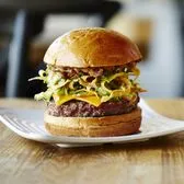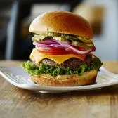 A classic Burger made from our custom Beef blend, served with Leaf Lettuce, Ripe Tomato, Red Onion, and Pickles on a toasted Brioche Bun.