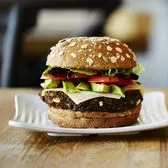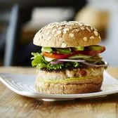 Fresh Chopped Vegetable Patty, Made in House, topped with Swiss Cheese, Spring Greens, Avocado, Tomato, Basil Garlic Aioli, served on a Multi-Grain Bun.