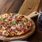All-natural chicken, applewood-smoked bacon, pineapple, red onion, mozzarella, hickory-smoked BBQ sauce, topped with fresh basil.