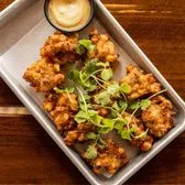 miso mustard, piri piri aioli, toasted white sesame // contains gluten, onion, and soy, fried in the same oil as tree nuts