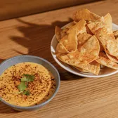 tortilla chips, kimchee furikake // contains dairy and soy, chips fried in the same oil as gluten