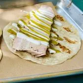 Smoked turkey served on a homemade beef tallow tortilla topped with your choice of sauce.