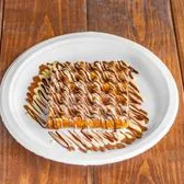 Milk and white chocolate waffle topped off with a scoop of ice cream and crushed Oreos.