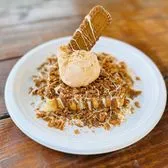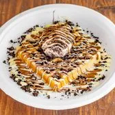 Milk and White Chocolate topped off with crushed Lotus Biscoff and a scoop of vanilla ice cream.