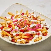 Seasoned fries, spicy feta, diced tomato, pickled red onions, oregano, garlic feta sauce (840 Cals)
