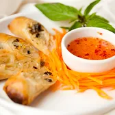 Vegetarian. No fish sauce. Deep-fried spring rolls skin stuffed with bean thread noodle, green cabbage, bamboo shoots, shredded black mushrooms & spices. Served with Mam's honey sweet & sour sauce.