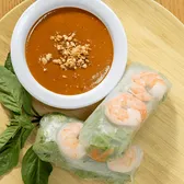 Vegetarian. No fish sauce. Shrimp or tofu. Rice paper stuffed with rice vermicelli, vegetables, basil, & mint. Served with Mam's spicy peanut sauce or gf sweet & sour sauce.