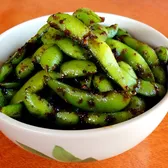 Spicy. Edamame wok-tossed in Mam's homemade roasted chili & mixed soy sauce reduction.