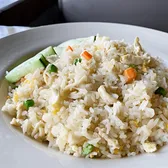 Stir-fried rice with blue crab meat, egg, green onions with mixed soy sauce, wok-fried until light brown perfection.