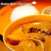 Spicy. Slow-cooked braised beef chunks in Thai yellow curry with golden potatoes, onions, black pepper and curry powder.