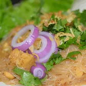 Spicy. Flat rice noodle or bean thread noodle tossed in special sauce (lemongrass, roasted chili sauce, lime juice & honey), peanut and fried shallots.