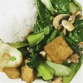 Stir-fried choice of meat with Chinese broccoli, baby bok choy and mushrooms in a mixed soy and garlic sauce.