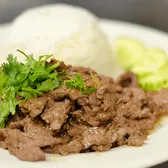 Slowly cooked beef chunks in Mam's special sauce with caramelized yellow onions, tomatoes, black pepper & palm sugar. Served with rice, spicy chili & pickled garlic sauce on the side.