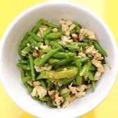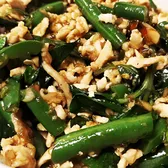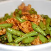 A choice of meat stir-fried with green beans and Mam's mixed soy sauce & garlic-mellow and savory.