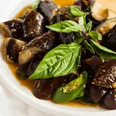 Spicy. Stir-fried Thai purple eggplant with mixed soy sauce, jalapeños and Thai basil.