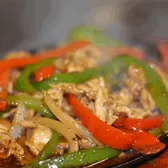 Spicy. Stir-fried choice of meat with yellow onions & bell peppers in Mam's special black pepper sauce. Served on a sizzling plate.