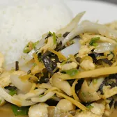 Stir-fried shredded ginger with a choice of meat, green onions, onions, shredded black mushrooms & straw mushrooms.