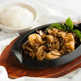 Spicy. Stir-fried choice of meat with young tender bamboo shoots, mushrooms & Thai basil in a very hot & spicy sauce, young peppercorn, Thai chili, & garlic. Served on a sizzling plate.
