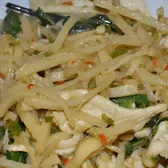 Stir-fried bean sprouts with a choice of meat, green onions with light soy sauce.