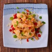 12 pcs. Battered and deep-fried jumbo shrimps sautéed with white onions bits, red and green bell peppers bits, red chili powder and Sichuan peppercorn powder