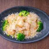12 pcs. Deep-fried prawns stir-fried with bread crumbs, garlic bits, and green onion, served with steamed broccoli