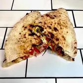 Pepperoni, Prosciutto, Shredded Mozz, and Banana Peppers folded as a sandwich and cooked in the oven, and then filled with Shredded Lettuce, Tomatoes, Extra Virgin Olive Oil, Balsamic Glaze, and Salt & Pepper