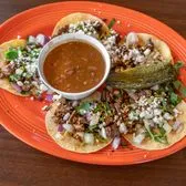 Three slow-simmered birria tacos made with your choice of beef birria, chicken, carnitas, or shrimp. Each taco is griddled until perfectly crispy, filled with melted cheese, and served with a rich consomé for dipping. Comes with rice and your choice of beans for a complete, hearty plate.