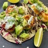 Juicy grilled shrimp, with pickled cabbage, cilantro, onions and tomatoes: served in your choice of tortilla. Try it with sliced avocado and jalapeno ranch like the picture