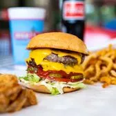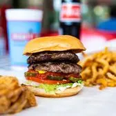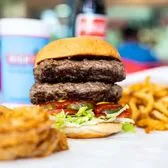 (2) 1/2 lb patties, pick condiments, veggies and add cheese as an add-on