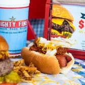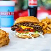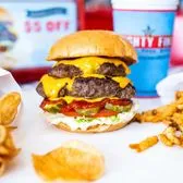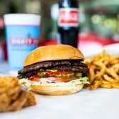 1/4 lb patty on top of a 1/2 lb patty, pick condiments, veggies and add cheese as an add-on