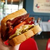 Slices of center-cut bacon, lettuce, tomato, and mayo on buttered Texas Toast