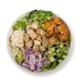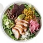 Romaine, blackened chicken thigh, organic black bean, roasted corn, pickled onion, cotija, organic blue corn tortilla strips, avocado, lime wedge, creamy jalapeño lime dressing (1oz: 40 cals) 36g Protein Gluten Free