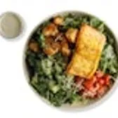 Sustainable salmon, romaine, kale, shaved parmesan, roasted cherry tomato, cucumber, housemade croutons, Caesar dressing (1oz: 170cals) 39g Protein