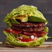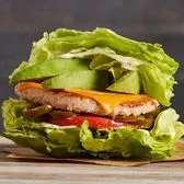 Double Certified Angus Beef® Iceburger, Applewood Smoked Bacon, Fresh Avocado, Pickles, Diced Onions, Tomato, Mustard