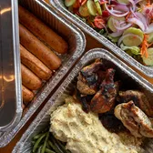 Spaghetti with marinara sauce and homemade brisket and pork meatballs blended with fresh herbs and topped with Parmigiano. Served with choice of House salad or Caesar salad to fit portion. Along with bread sticks.