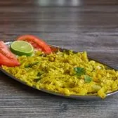 Marathi style spicy yellow mung beans cooked with garlic & red chili tarka.