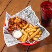 6 Buffalo Wings tossed in a Buffalo Sauce of your choice. Served alongside a side of Jersey Shore Fries and a drink.