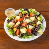 Crispy Lettuce Blend, Tomatoes, Cucumbers, & Black Olives served with your choice of dressing.