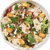 Chicken, mixed greens, grapes, pecans, artichoke hearts, dried cranberries, Bleu Cheese and croutons served with Sherry Vinaigrette dressing. (N)
