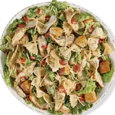 All-natural chicken, romaine blend, pesto bowtie pasta, parmesan, red bell peppers and croutons. Tossed in caesar dressing.