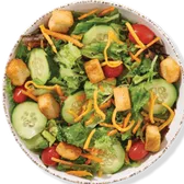 Mixed greens, tomatoes, cucumbers, shredded carrots, cheddar and croutons served with your choice of dressing. Adds 250-450 cal.