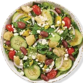 Romaine blend, artichoke hearts, Kalamata olives, cucumbers, pepperoncinis, red onions, tomatoes and feta served with Greek dressing.